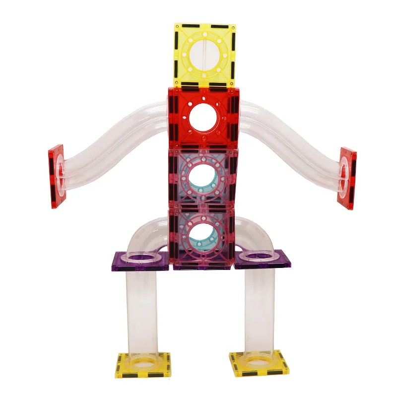 This 106-piece magnetic building set allows children aged 3 and up to construct customizable marble runs. Comprising squares, triangles, and various track pieces in vibrant colors, the set encourages creativity, problem-solving, and fine motor skills. Constructed from durable ABS plastic with embedded magnets, it ensures safe and stable structures. Certified with EN71, CE, and ASTM F963 standards, it’s an engaging educational tool for developing engineering and design skills.