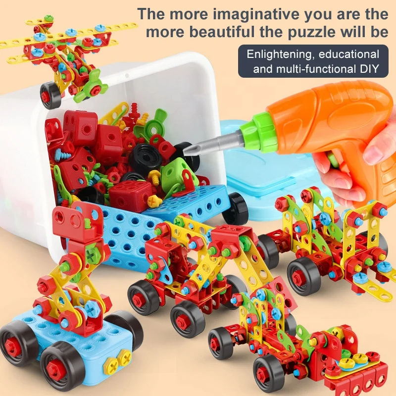Child Screw Toys Electric Drill Tool Box Develop Creative Building Block Boys Educational Building Block Nut Assembly Toys